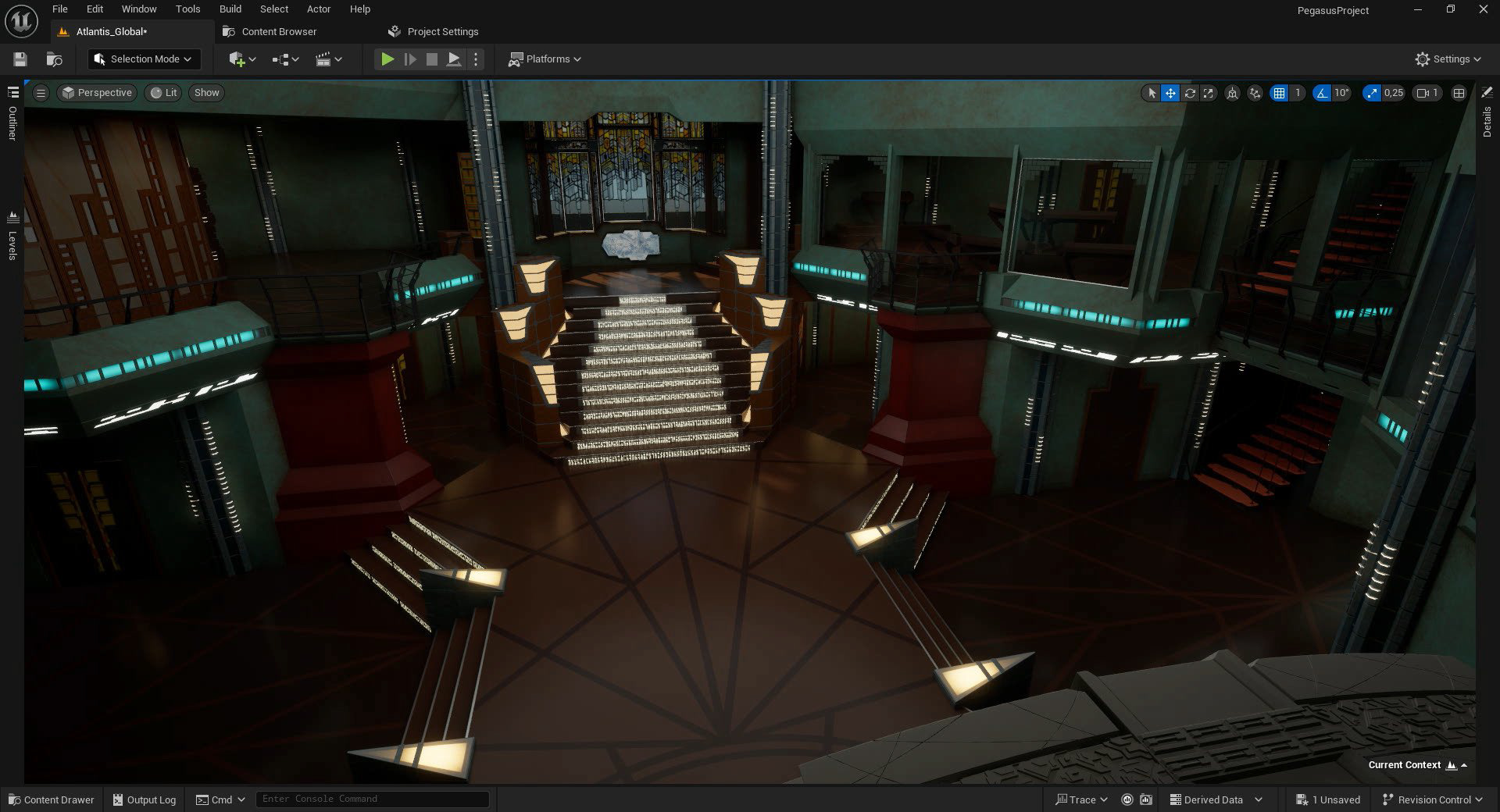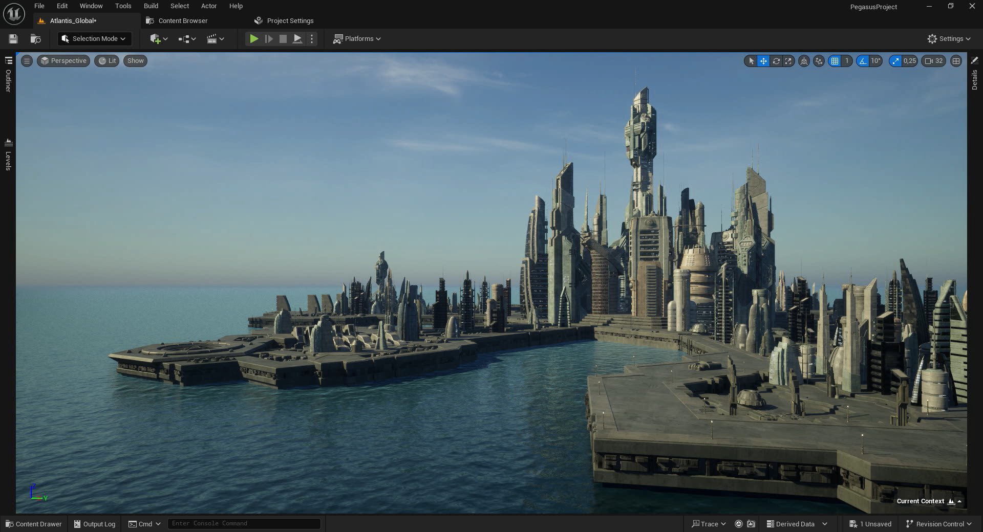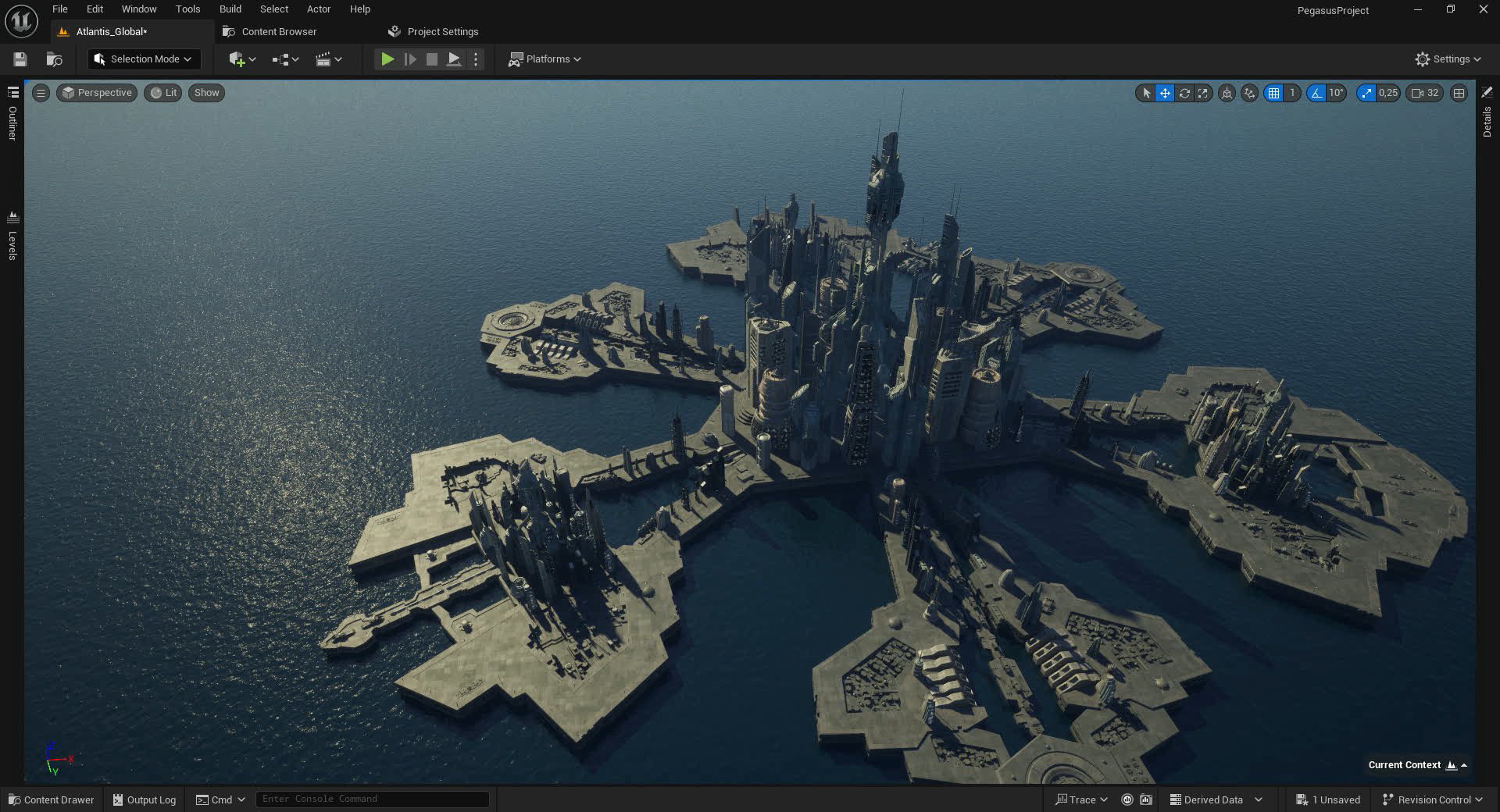 Reproduction de la cité d'Atlantis, de la série Stargate Atlantis, dans Unreal Engine 5
